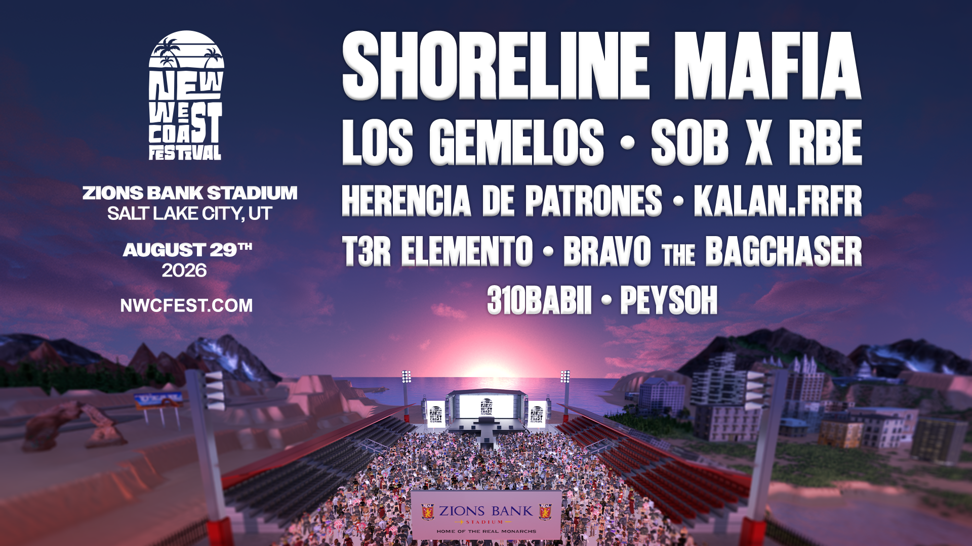 New West Coast Music Festival with Shoreline Mafia, Los Gemelos, SOB X RBE, Herencia De Patrones, Kalan.FrFr, T3R Elemento, Bravo The Bagchaser, 310Babii, & Peysoh